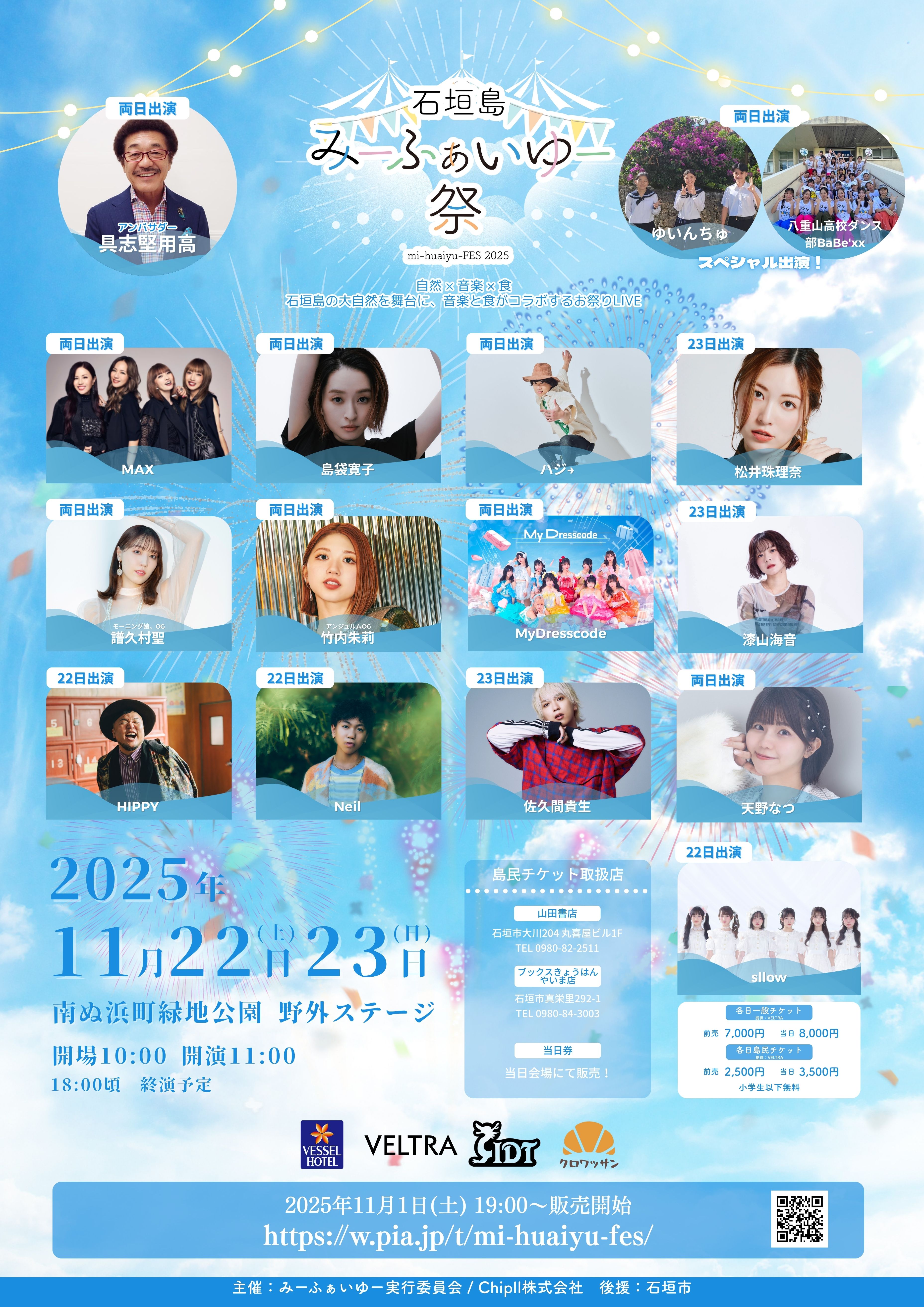 11月22日(土)・23日(日)沖縄県・石垣島某所にて開催される「石垣島 みーふぁいゆー祭」に島袋寛子が出演いたします!